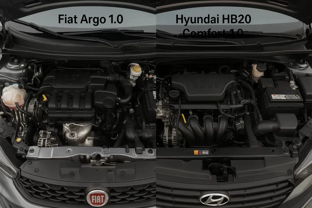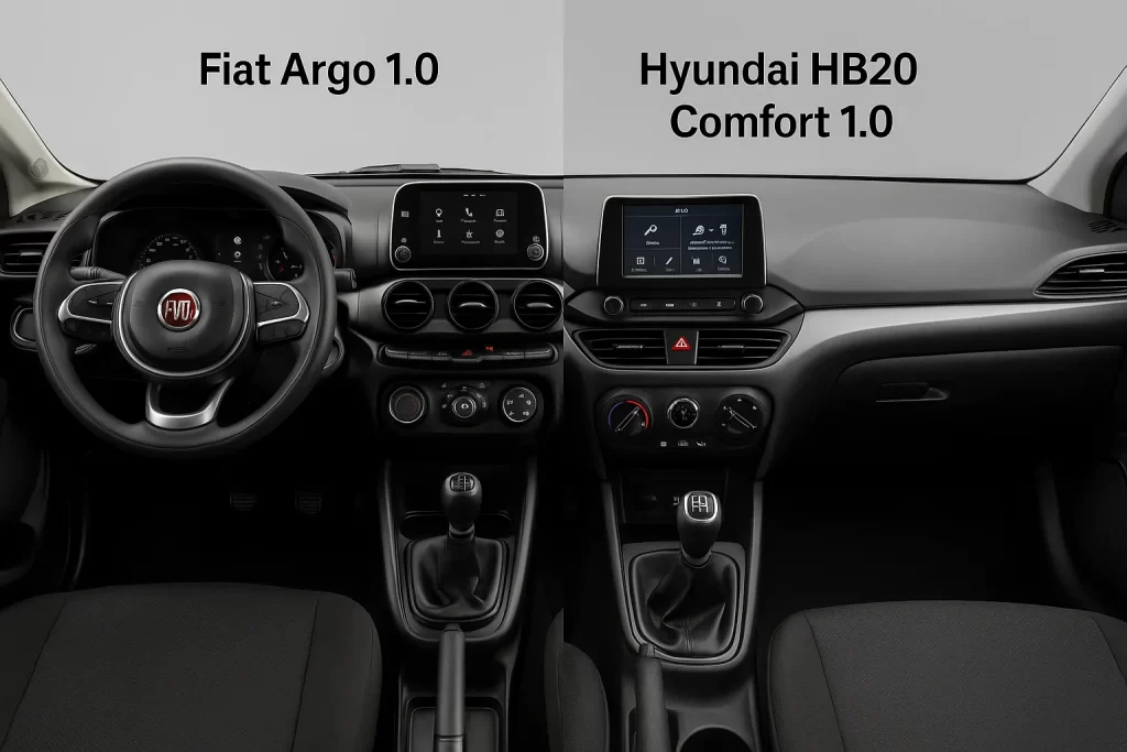 Dois dos modelos mais procurados entre os motoristas que buscam economia, praticidade e baixo custo de manutenção são o Fiat Argo 1.0 e o Hyundai HB20 Comfort 1.0, ambos em suas versões básicas com câmbio manual de 5 marchas.