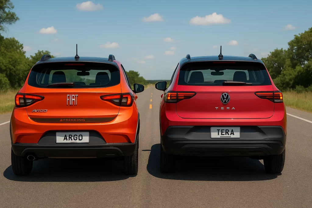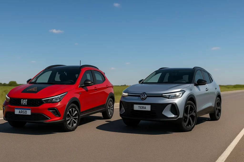 o Fiat Argo Trekking 1.3 e o Volkswagen Tera 1.0 TSi, ambos com transmissão manual. Neste comparativo de carros, analisamos o desempenho, equipamentos, consumo e custo-benefício para ajudar o consumidor a decidir qual modelo se encaixa melhor no dia a dia.