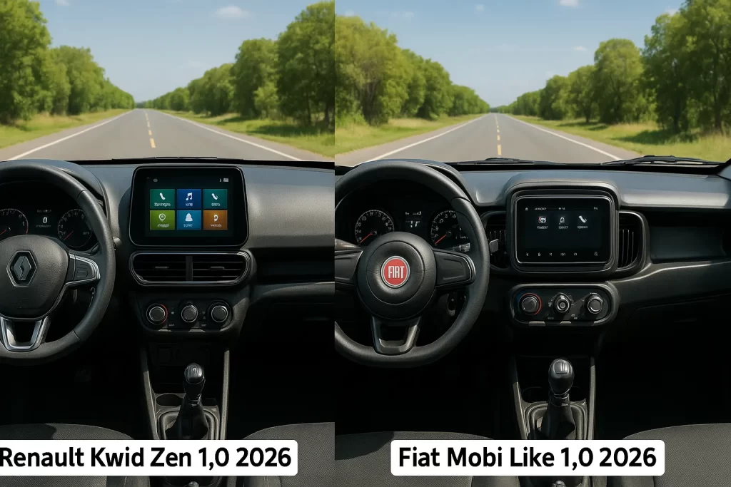 Comparativo carros Renault Kwid Zen 1.0 2026 vs Fiat Mobi Like 1.0 2026 – Qual é o melhor para o dia a dia urbano