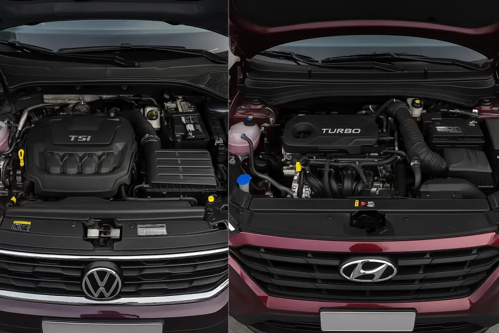 - VW T-Cross 1.0 TSI Motor 1.0 TSI, 3 cilindros turbo flex – Hyundai Creta Comfort 1.0 TGDI 1.0 TGDI, 3 cilindros turbo flex;