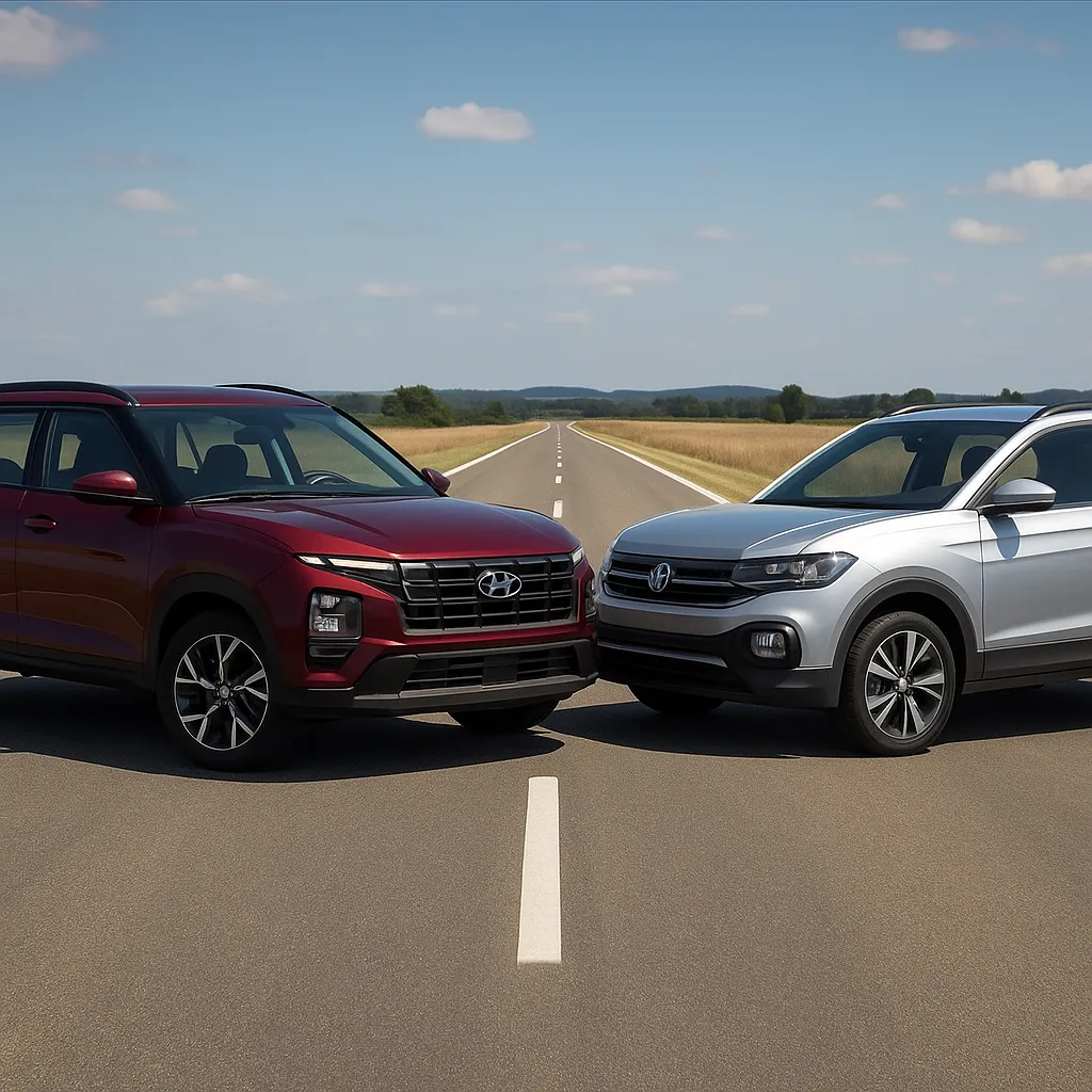 Comparativo 2026: VW T-Cross 1.0 TSI vs Hyundai Creta Comfort 1.0. Disputa acirrada entre os SUVs compactos turbinados.