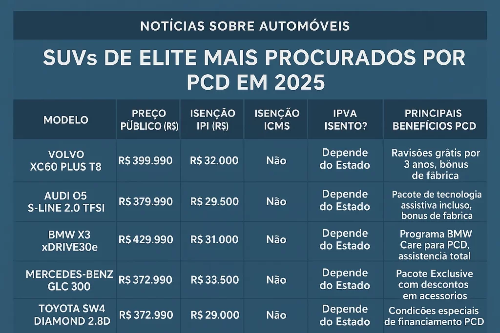 Neste editorial para o site de notícias sobre automóveis, vamos analisar as vantagens, limitações e o cenário de mercado que envolve a compra de SUVs de alto padrão para o público PCD em 2025.
