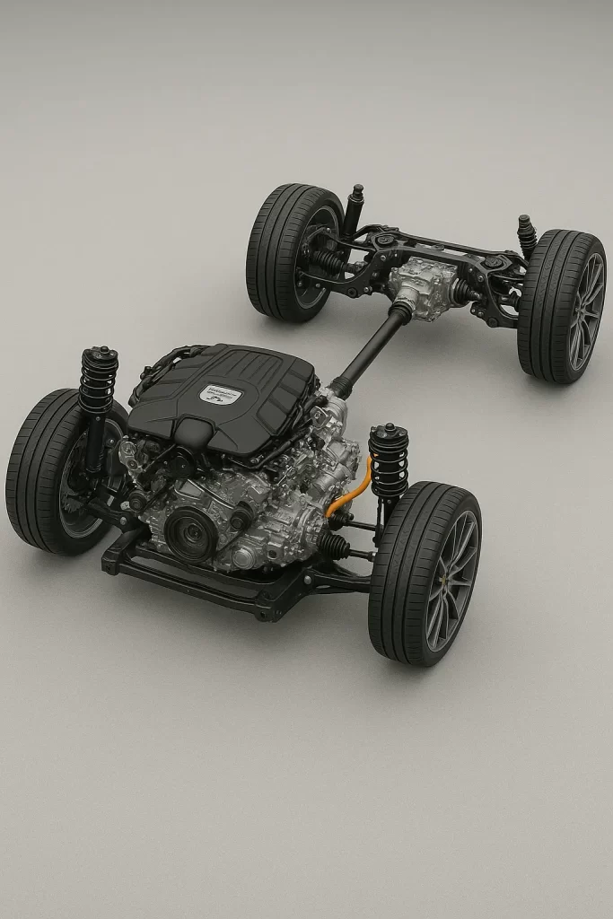 - Tração: Integral permanente (Porsche Traction Management – PTM);