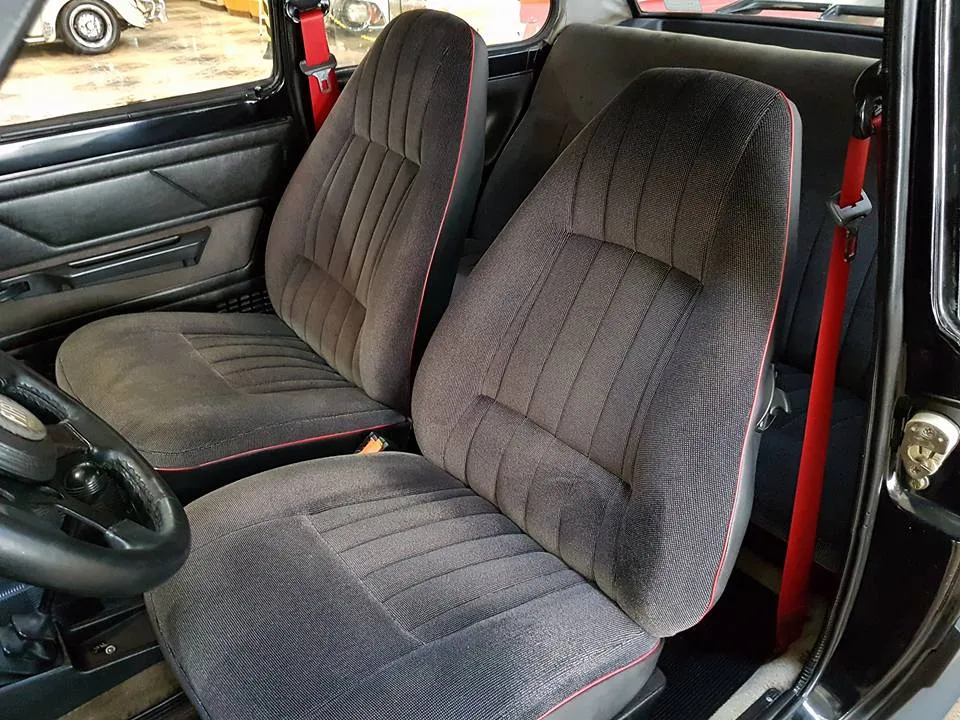 - Interior diferenciado: Painel com instrumentos adicionais (conta-giros, voltímetro, manômetro), bancos esportivos com revestimento e detalhes em vermelho, volante de quatro raios e cintos de segurança vermelhos.
