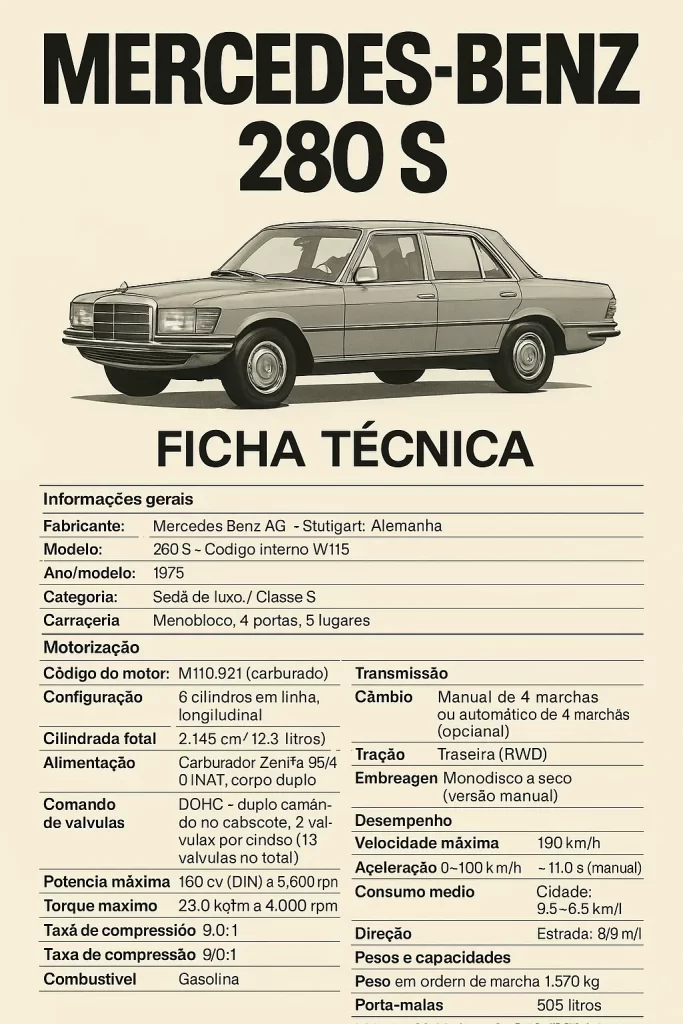 - Modelo: 280 S – Código interno W116;