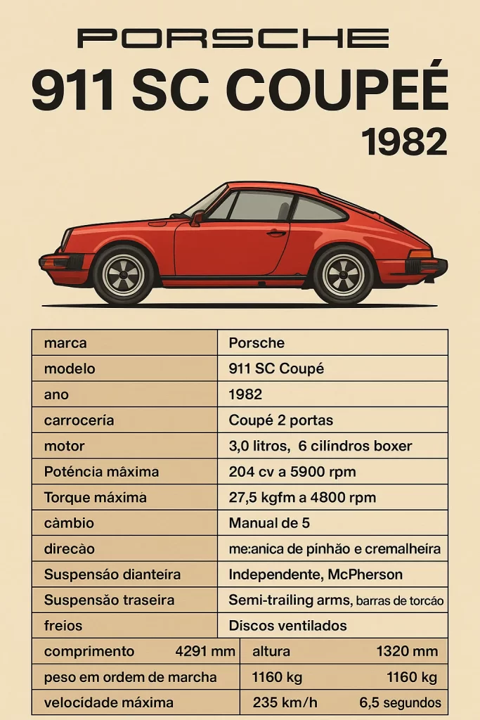 O Porsche 911 Coupé 1982 é um clássico absoluto da marca alemã, representando uma fase de transição importante dentro da linhagem do 911.