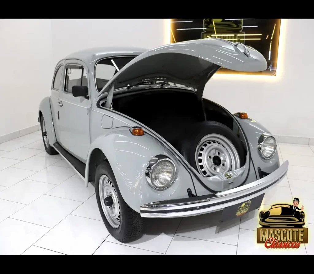 • O acabamento fosco acetinado era característico dos Fuscas dessa fase, com um leve brilho, mas longe do verniz brilhante moderno;