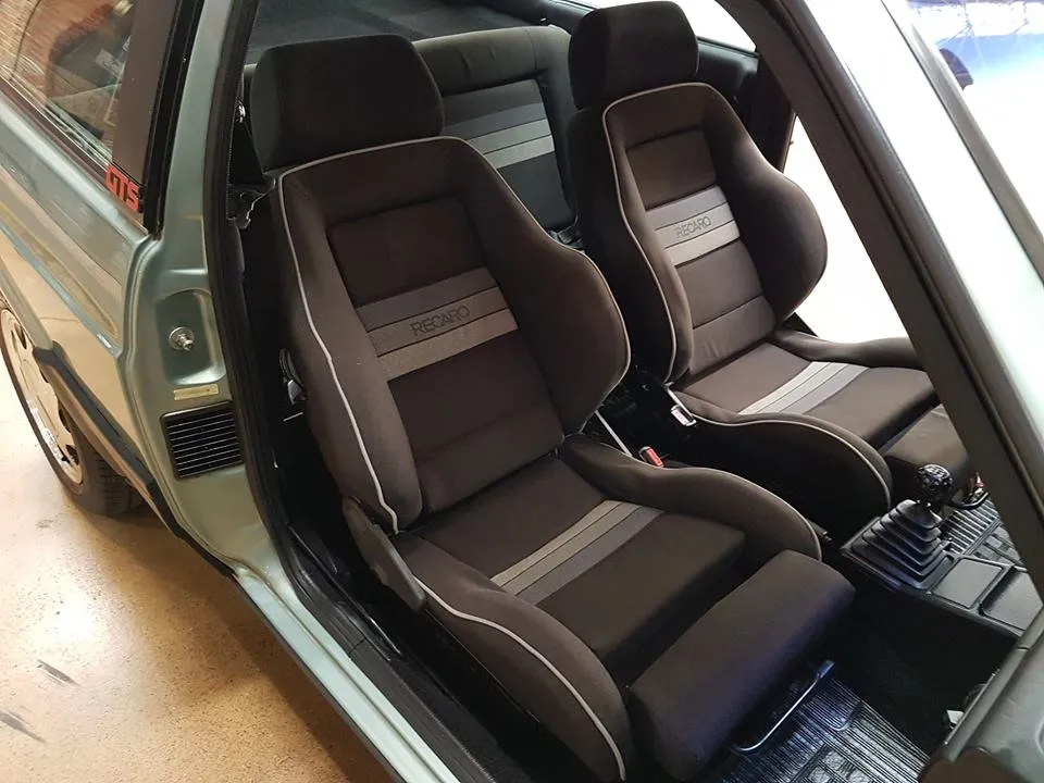 O interior, geralmente, vinha em tons escuros com bancos esportivos Recaro revestidos em tecido com padrão quadriculado ou liso, dependendo da cor externa.