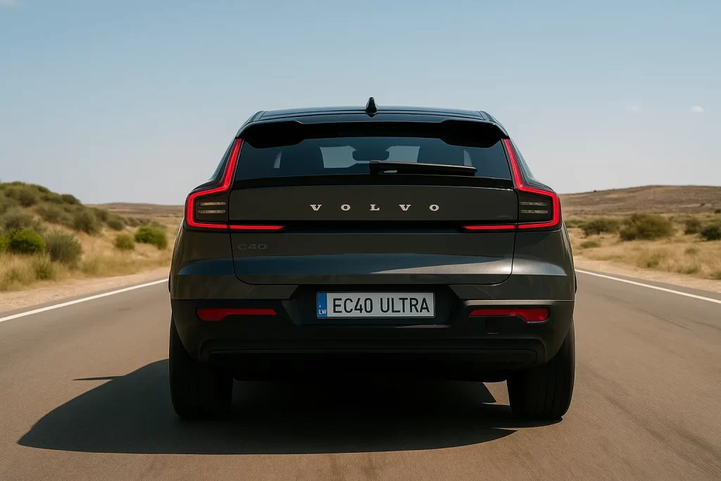 O Volvo EC40 Plus 2026 é equipado com um motor elétrico traseiro síncrono de ímã permanente, com tração traseira.