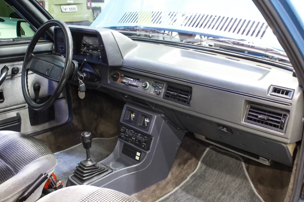 - Padrões de estofamento e carpete variavam conforme versão; carpete comum mais fino (6 mm).