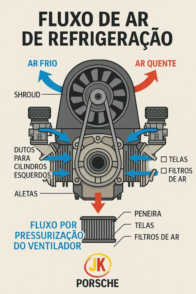 • Ar com ventilador vertical e dutos; o óleo fazia grande parte do trabalho térmico via dry-sump com radiadores externos.