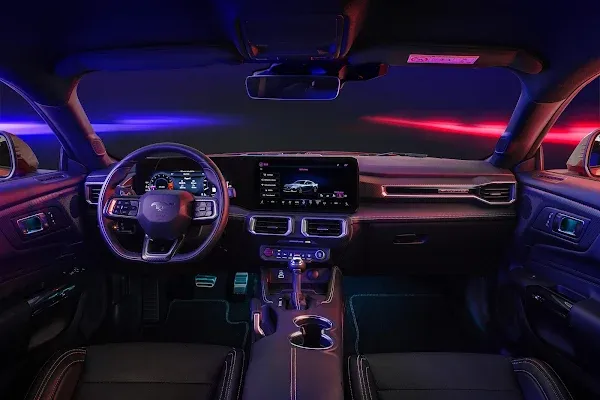 O destaque absoluto é o motor Coyote 5.0L V8 aspirado, que entrega mais de 480 cv e 56,7 kgfm de torque.