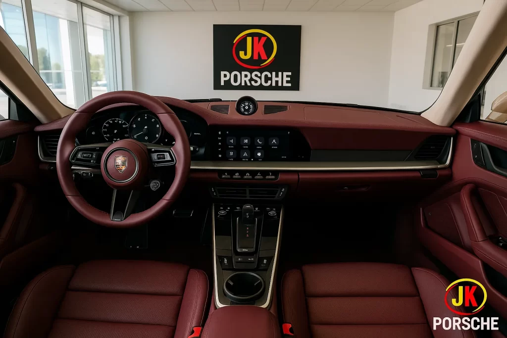 No interior, a Porsche aposta em sofisticação digital sem abrir mão da esportividade clássica. O quadro de instrumentos agora é 100% digital, mas mantém o conta-giros central analógico, uma homenagem à tradição da marca.