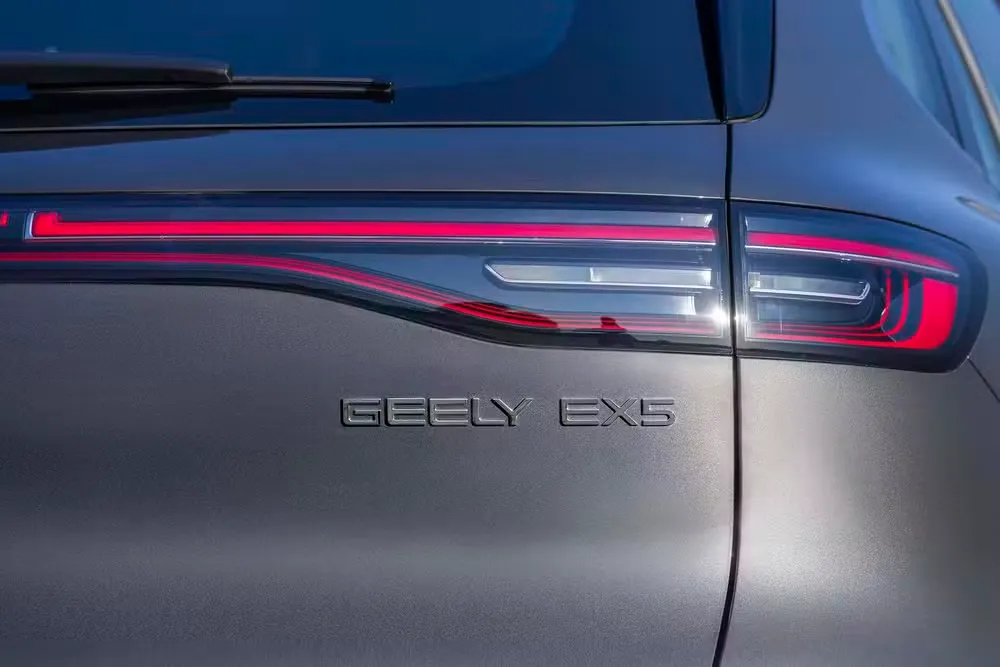 O EX5 Max 2026 mantém a identidade visual sofisticada que a Geely adota nos últimos lançamentos: linhas fluidas, grade frontal fechada com acabamento aerodinâmico e assinatura luminosa em LED.