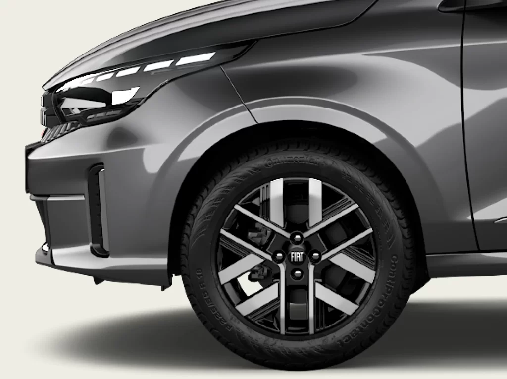 Rodas de aço com calotas de 14 polegadas e lanternas traseiras amplas reforçam o apelo funcional do modelo, que prioriza o uso cotidiano e a confiabilidade.