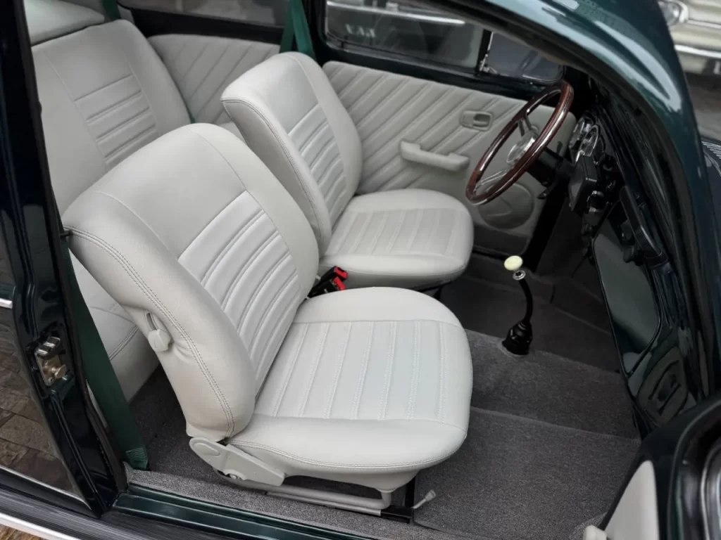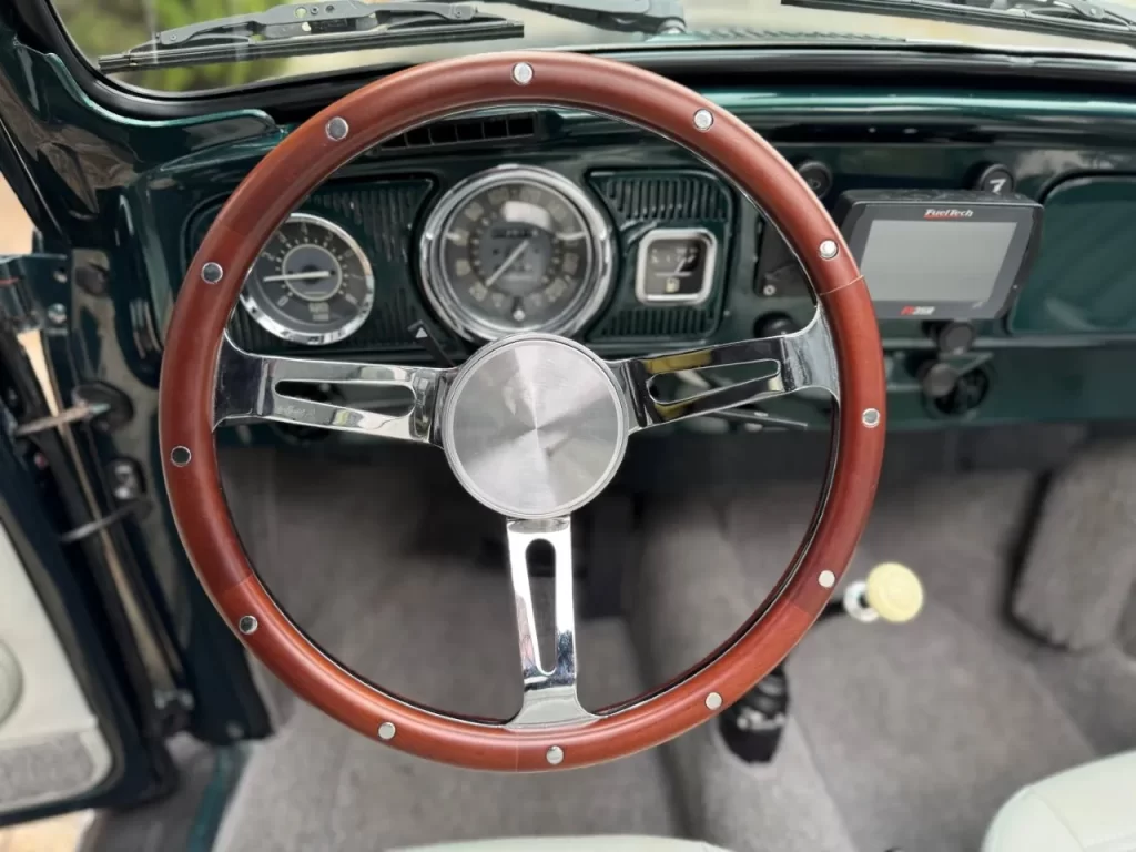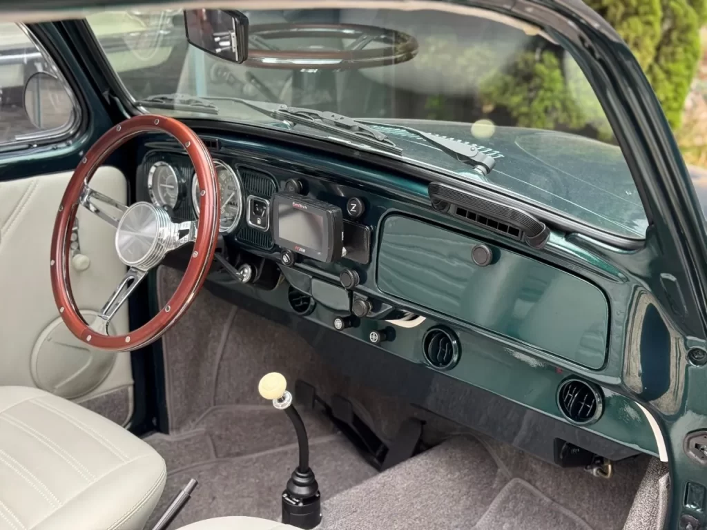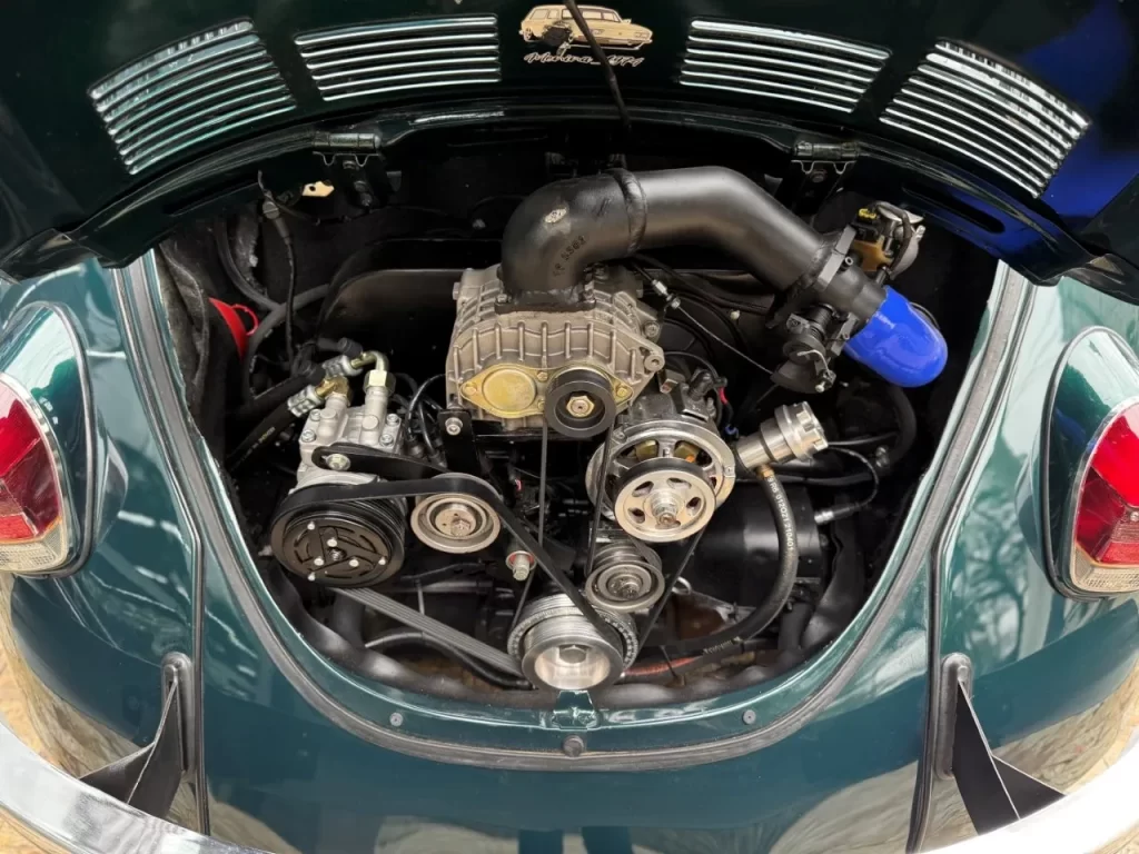 Garantindo respostas imediatas e um ganho expressivo de potência e torque. O escapamento especial reforça o ronco esportivo, enquanto o ar-condicionado proporciona conforto mesmo nos dias mais quentes, algo raro em Fuscas dessa época.