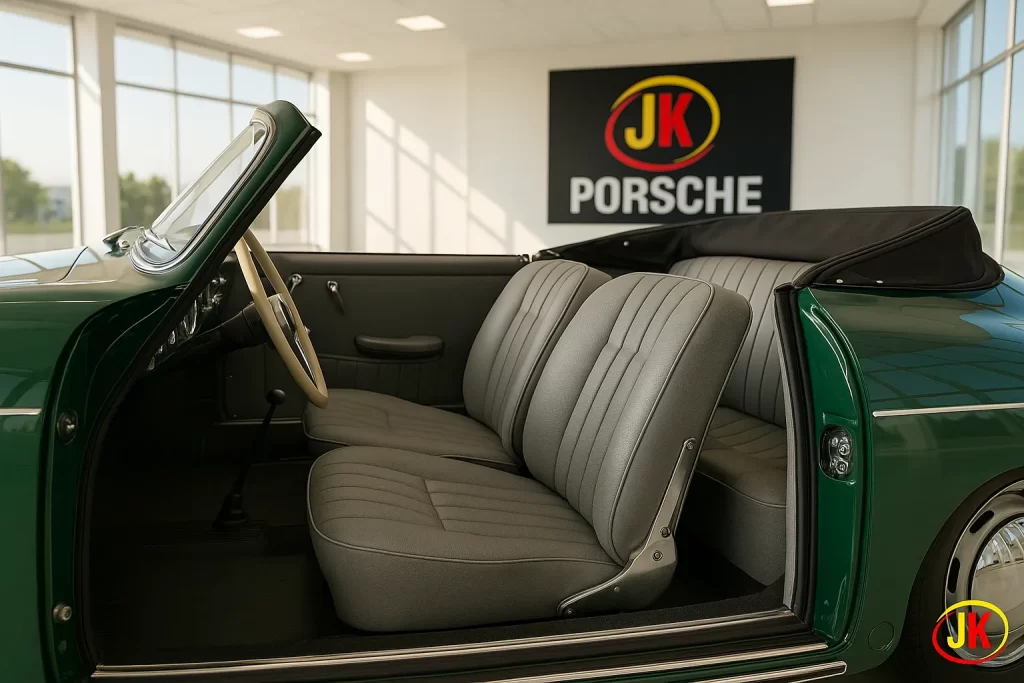 A versão Cabriolet (conversível) do 356 foi fabricada pela Reutter, parceira histórica da Porsche, com atenção minuciosa aos detalhes.