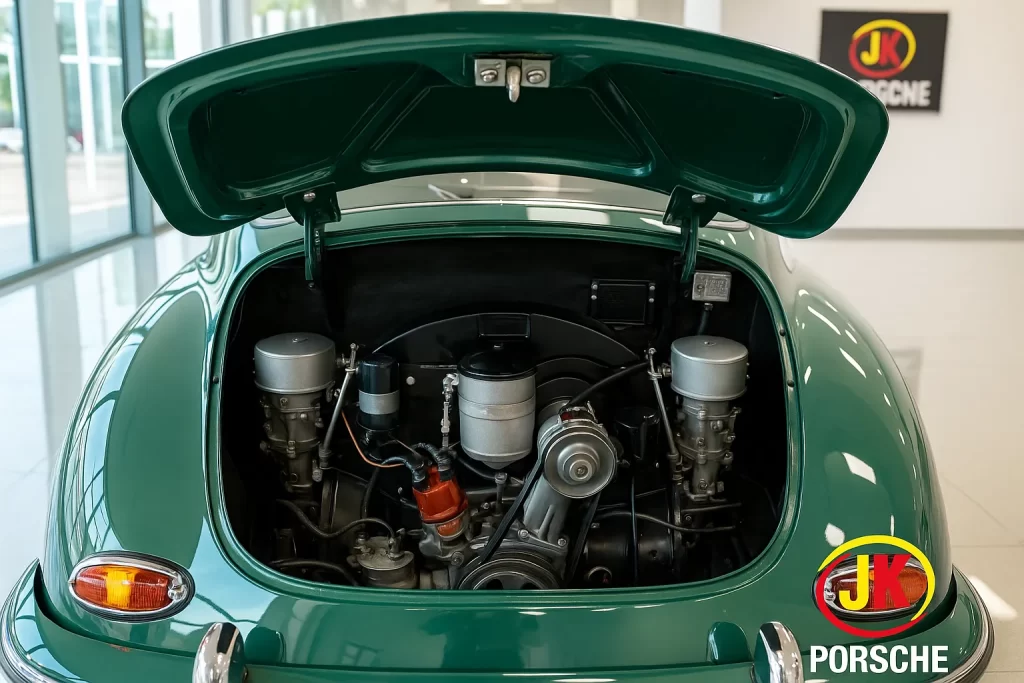 Esses números mostram como, já na década de 1950, a Porsche buscava equilibrar baixo peso, eficiência mecânica e dirigibilidade esportiva, estabelecendo uma filosofia que se perpetua até os dias atuais.