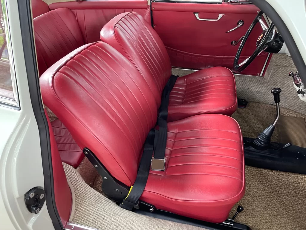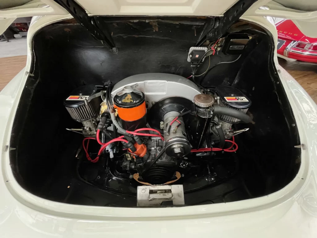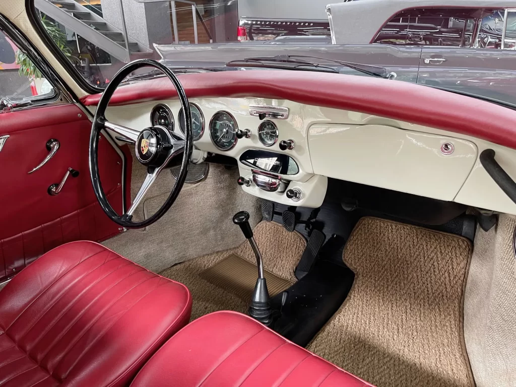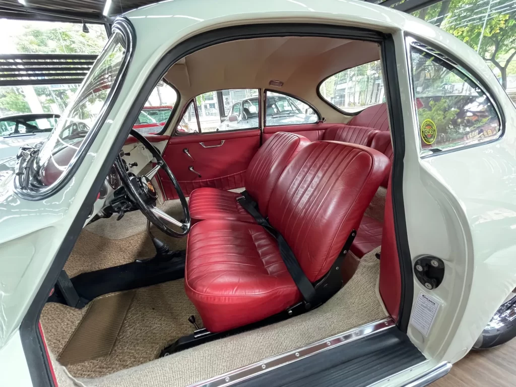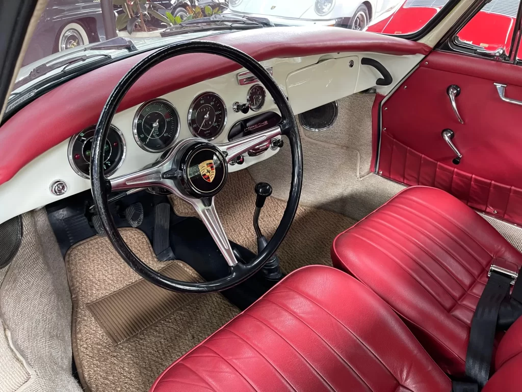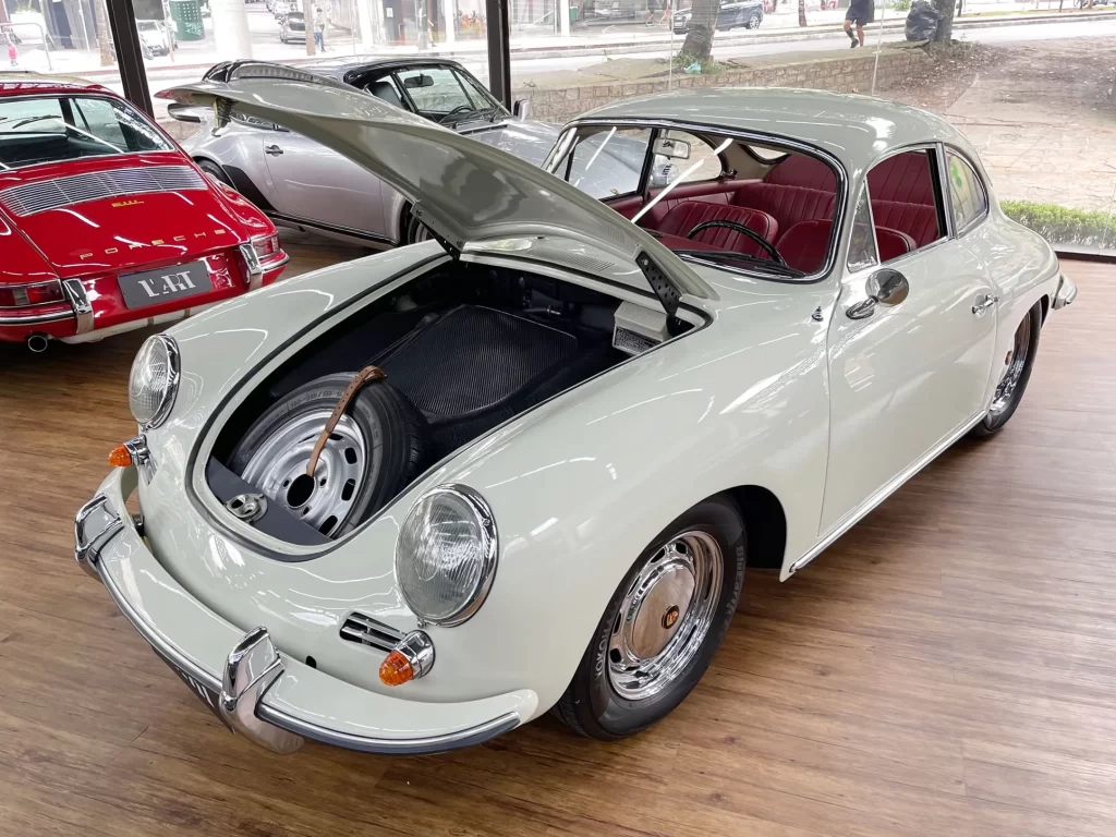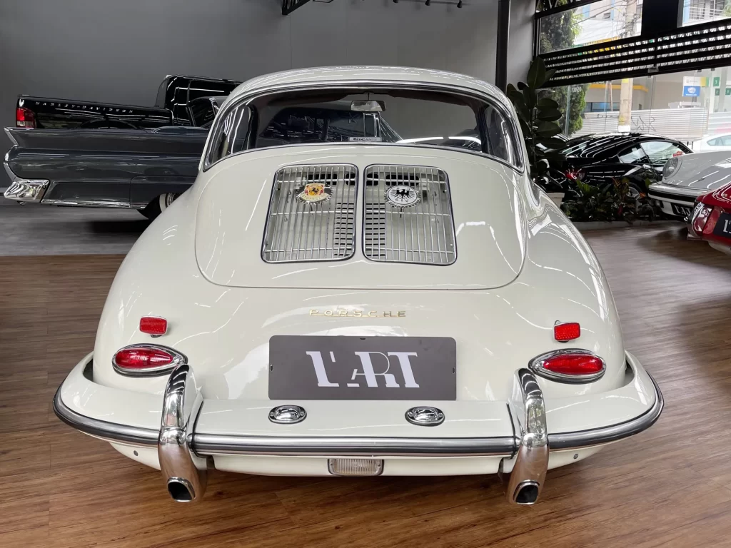 Porsche 356 C 1600 de 95 cv ano 1963, clássico em cor branco Light Ivory (Marfim Claro), disponível à venda. Um ícone da história Porsche com charme atemporal e excelente valorização no mercado de colecionadores.