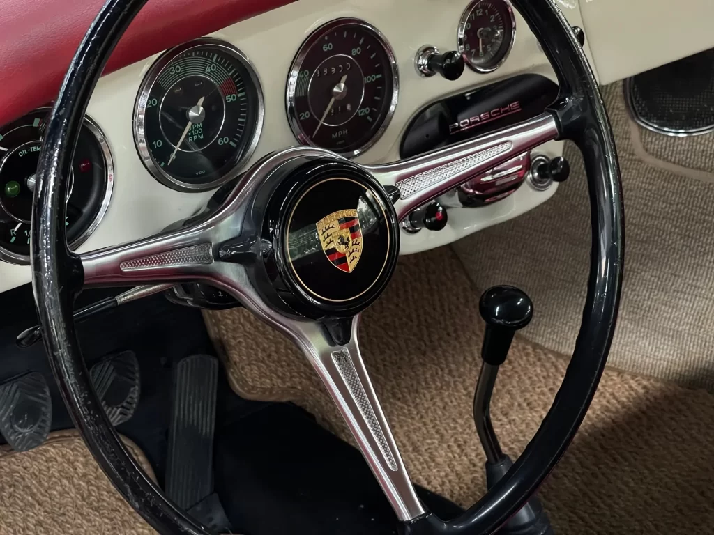 - Tipo: manual, 4 marchas sincronizadas (Zuffenhausen introduziu sincronização completa em 1962, e o 356 C já trazia esta evolução);