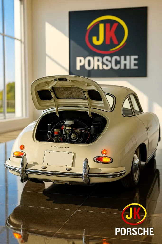 Tese executiva: para segurar um esportivo leve e arisco nas estradas europeias estreitas dos anos 50, a Porsche combinou governança térmica, geometria de sapatas e disciplina de manutenção.