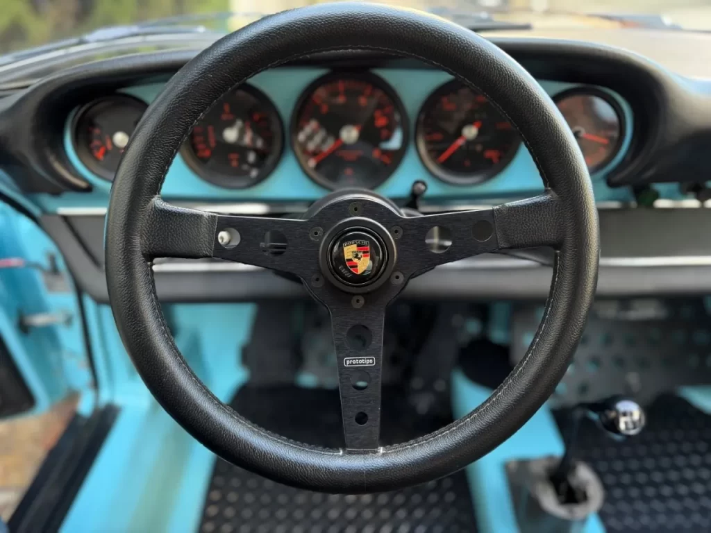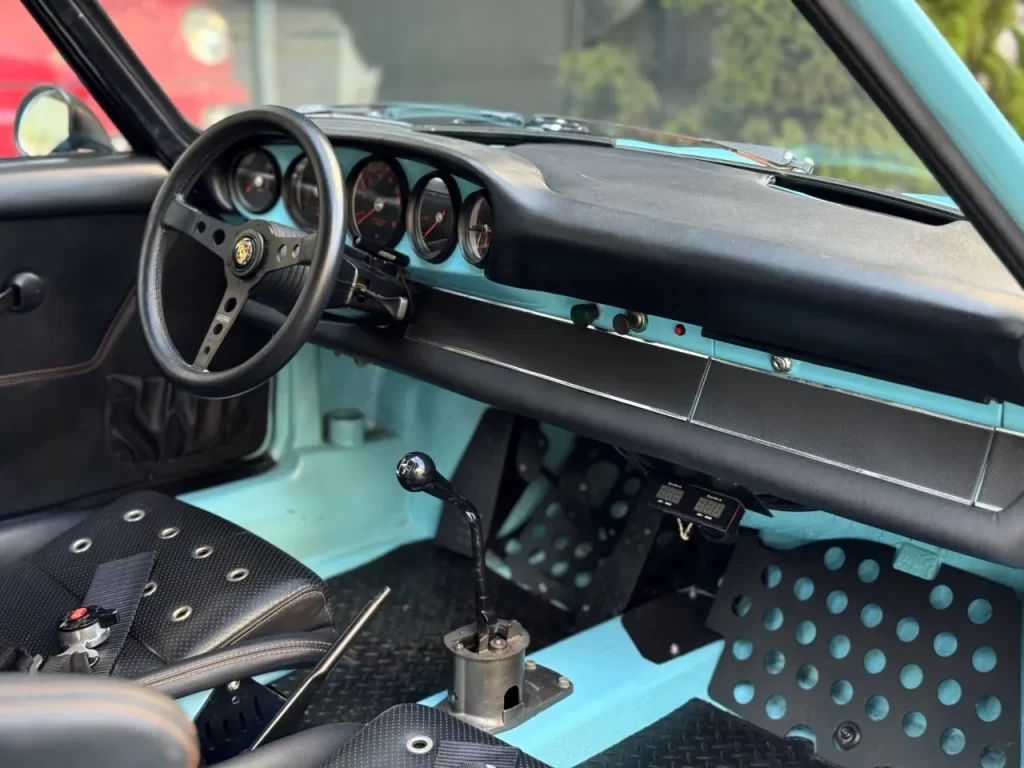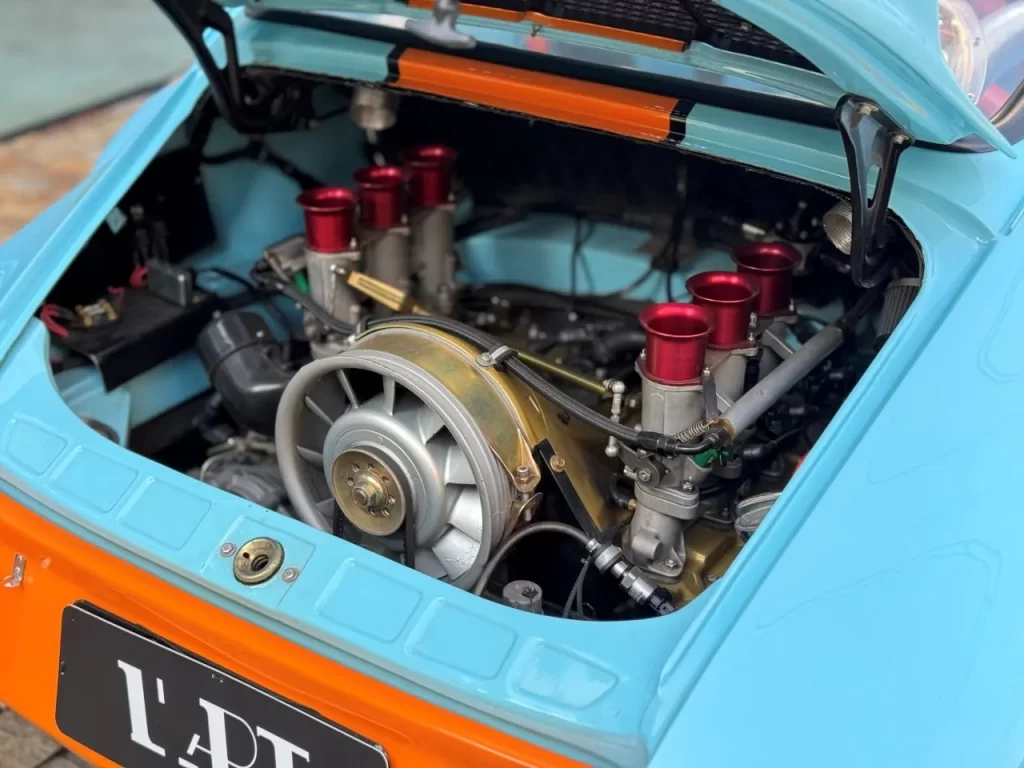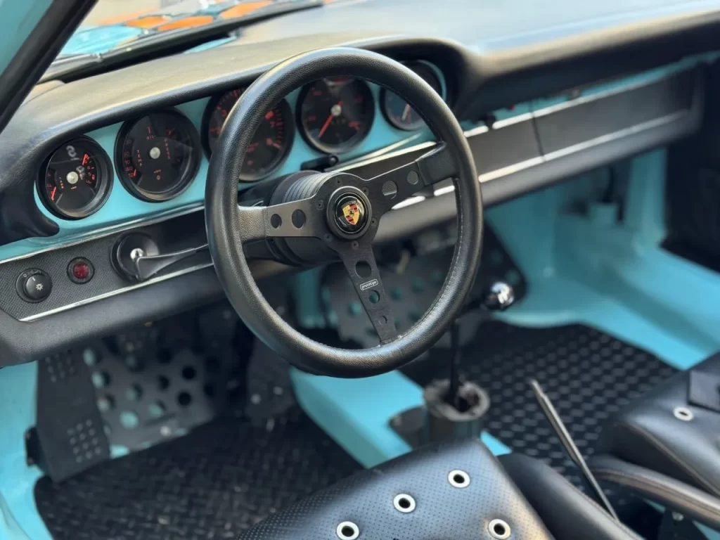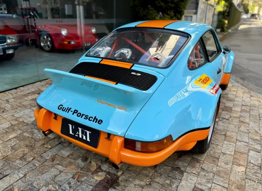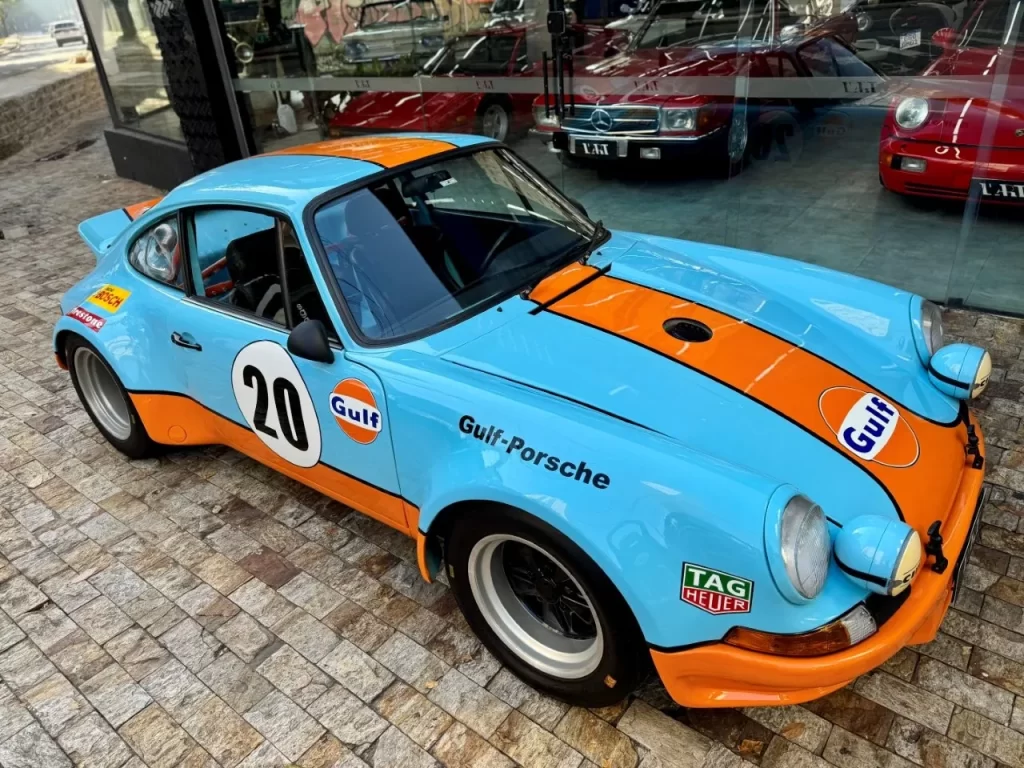 Um Porsche antigo que combina alma de corrida e exclusividade artesanal. Este Porsche 911 de 1971 (Tributo RSR) é uma recriação fiel ao espírito dos lendários RSR da década de 1970, com identidade visual inspirada nas máquinas da Gulf Racing, ícones que marcaram a história da Porsche nas pistas de endurance.