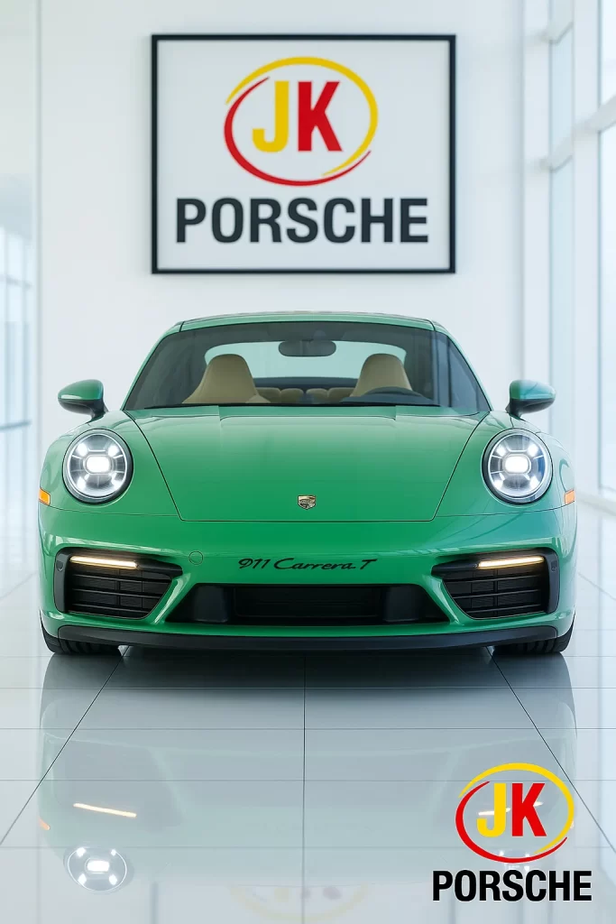 © 2025 JK Porsche — Catálogo visual de cores e acabamentos do 911 Carrera T 3.0 (MY2025). Tema escuro com destaques amarelos e vermelhos.