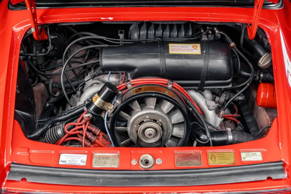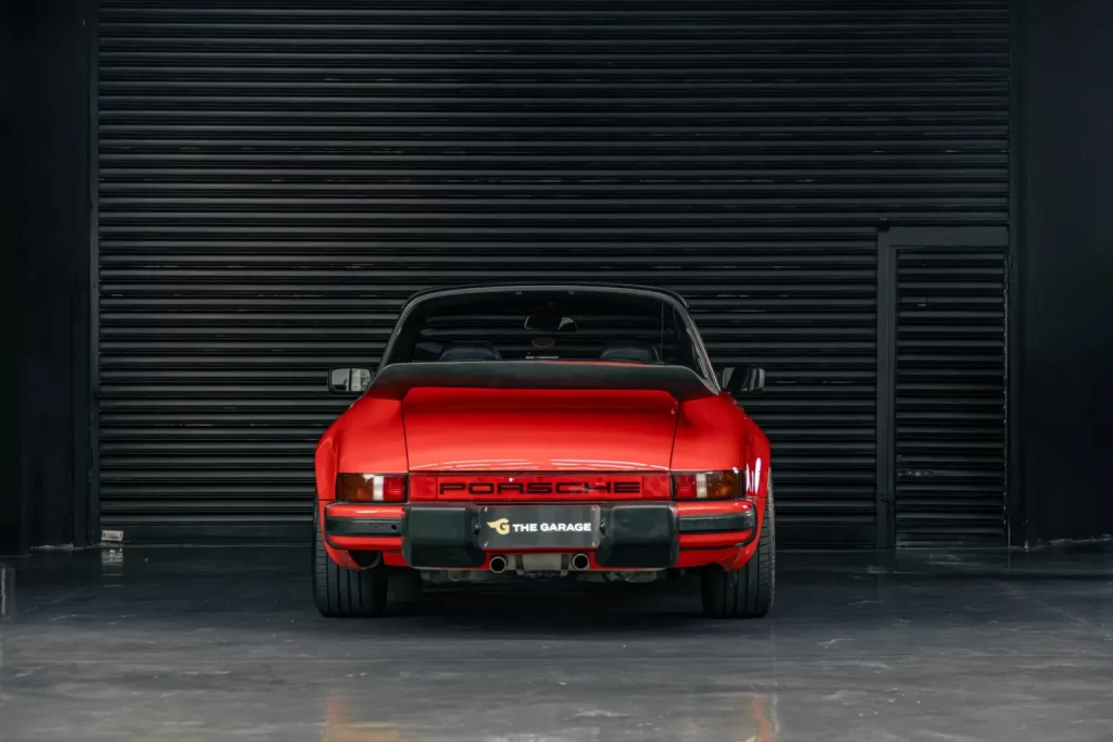 O design inconfundível do 911 SC em vermelho ressalta as linhas fluidas e as proporções equilibradas, mantendo-se atual mesmo após mais de quarenta anos.