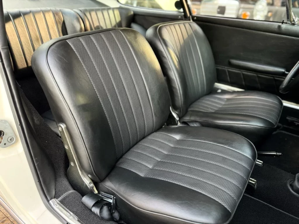 Interiores em couro sintético (leatherette) eram os mais comuns no 912 em 1966; combinações contrastantes eram populares (ex.: Irish Green com interior bege).