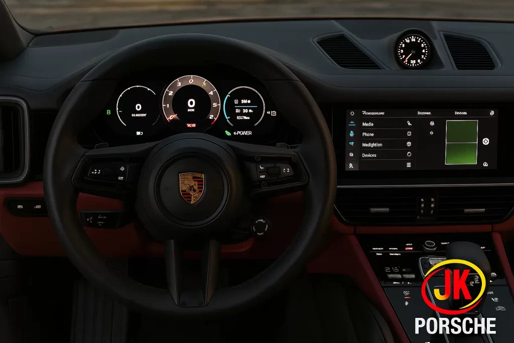 O Porsche atual Cayenne 2026 vem equipado com o sistema multimídia Porsche Communication Management (PCM) de última geração, totalmente integrado a Apple CarPlay e Android Auto sem fio, além de serviços de conectividade em tempo real.