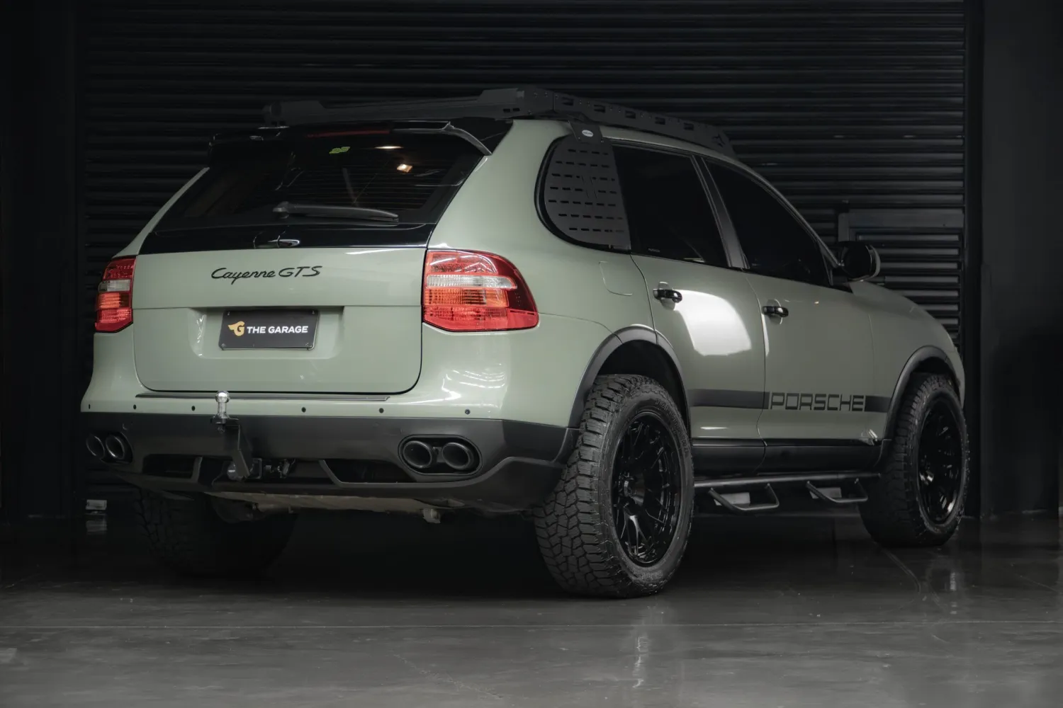 Com suspensão nova Eurowise e rodas KMC de perfil robusto, este Cayenne GTS entrega presença visual forte e comportamento dinâmico sólido. A plotagem em verde cria uma estética militar e aventureira, destacando o SUV em qualquer ambiente urbano ou fora de estrada. A carroceria encontra-se alinhada e em muito bom estado geral, reforçando o cuidado com o histórico do veículo.