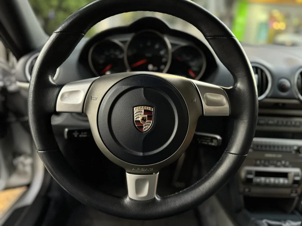 Esportivo de dois lugares, motor flat-six 2.7L (245 cv) em posição central e tração traseira. Unidade em excelente estado, 44.000 km, combinação de cores prata com interior em couro azul-marinho. Upgrades de bom gosto: escapamento inox e rodas originais de Porsche 911. Quatro pneus novos, manutenção em dia e ótimo nível de originalidade.