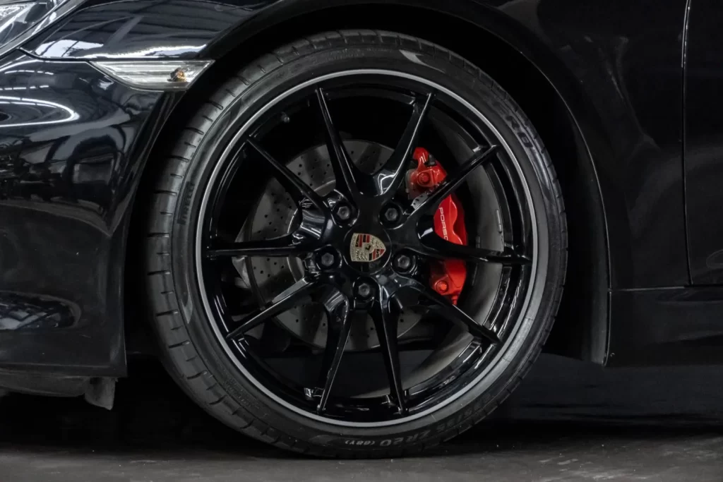 Já o conjunto de freios, equipado com discos ventilados e perfurados em todas as rodas, aliado ao ABS e ao sistema Porsche Stability Management (PSM), garante máxima segurança, estabilidade e confiança em qualquer condição de condução.