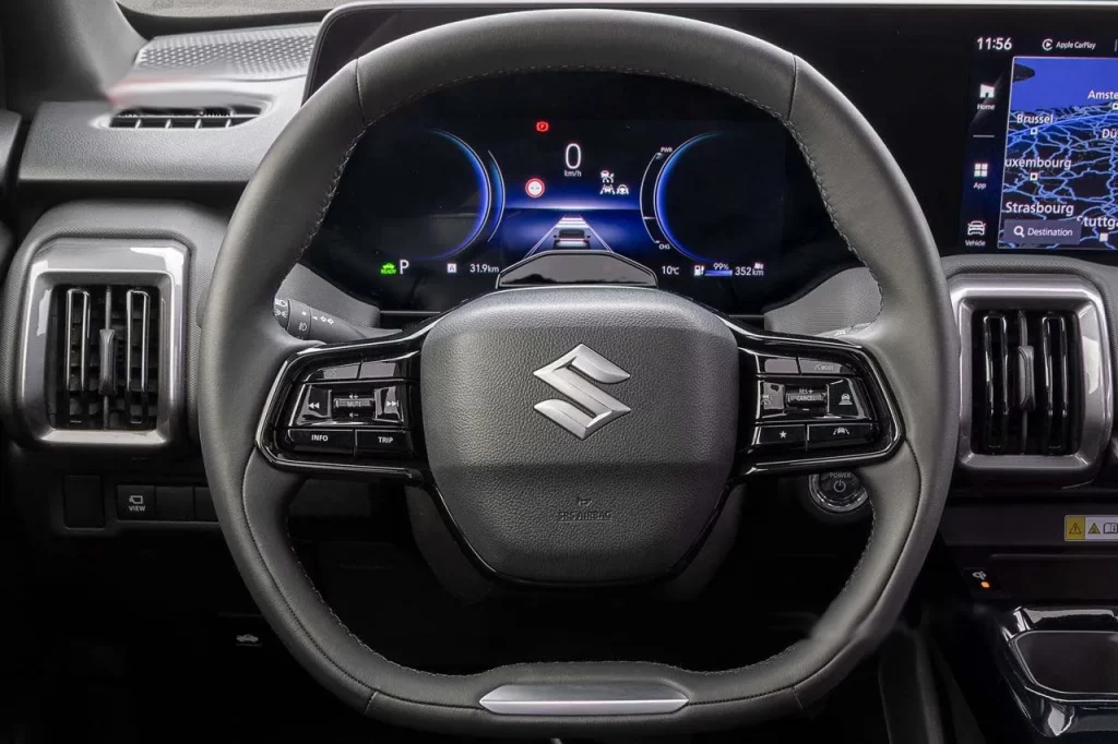 O Suzuki eVitara EV chega com soluções modernas em termos de conectividade e inteligência embarcada. A proposta é oferecer ao motorista uma experiência intuitiva, com comandos por voz, aplicativo para controle remoto de carga e climatização, além de atualizações remotas (OTA) do sistema operacional do veículo.
