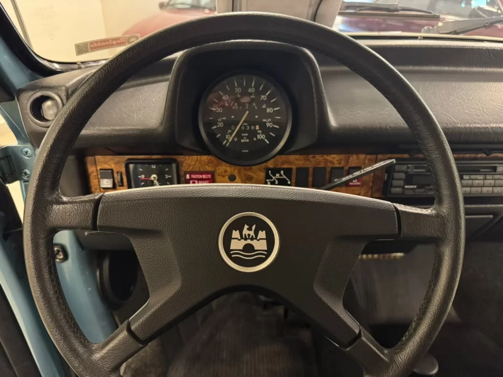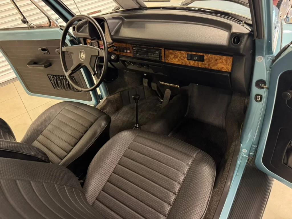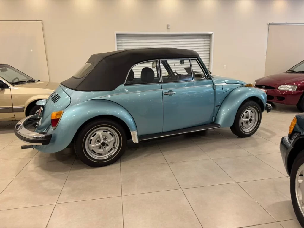 O Volkswagen Fusca alemão conversível de 1979 foi um dos últimos produzidos pela Karmann em Osnabrück, e já trazia todas as melhorias de segurança exigidas pelo mercado norte-americano, incluindo para-choques com amortecedores, cintos retráteis e luzes de aviso no painel.